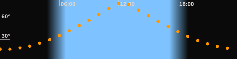 | Höchster Stand (Kulmination) | 12:22 Uhr (h = 86,4°) |
