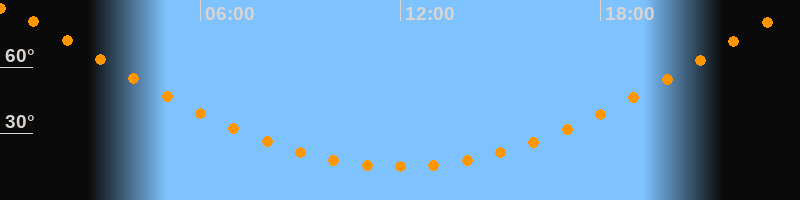 | Höchster Stand (Kulmination) | 23:59 Uhr (h = 86,4°) |
