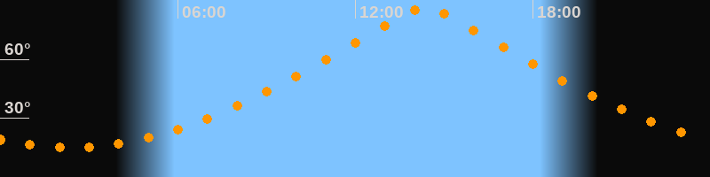 | Höchster Stand (Kulmination) | 14:21 Uhr (h = 86,4°) |