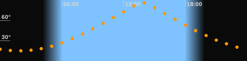 | Höchster Stand (Kulmination) | 13:50 Uhr (h = 86,4°) |