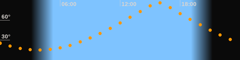 | Höchster Stand (Kulmination) | 15:49 Uhr (h = 86,4°) |