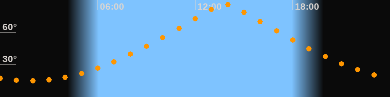 | Höchster Stand (Kulmination) | 13:51 Uhr (h = 86,4°) |