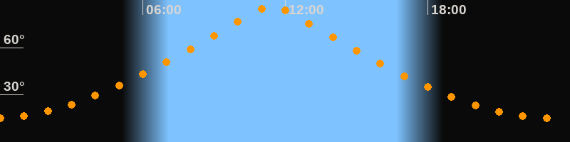 | Höchster Stand (Kulmination) | 11:25 Uhr (h = 86,4°) |