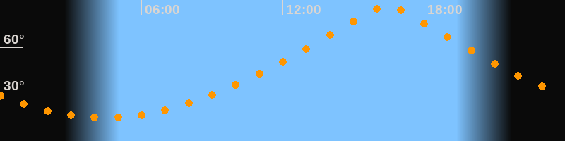 | Höchster Stand (Kulmination) | 16:25 Uhr (h = 86,4°) |