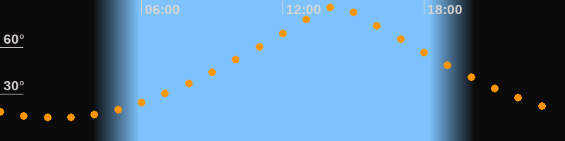 | Höchster Stand (Kulmination) | 14:16 Uhr (h = 86,4°) |