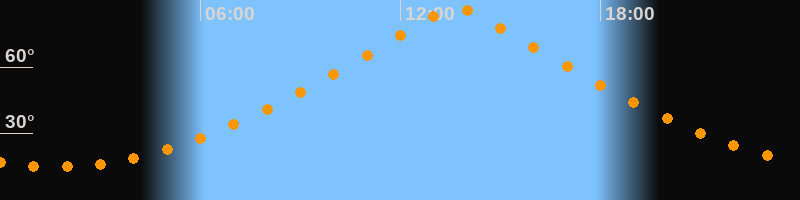 | Höchster Stand (Kulmination) | 13:41 Uhr (h = 86,4°) |