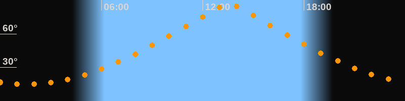 | Höchster Stand (Kulmination) | 13:33 Uhr (h = 86,4°) |