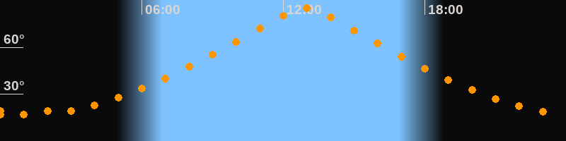 Höchster Stand (Kulmination)12:55 Uhr (h = 85°)