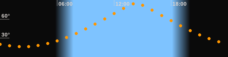 Höchster Stand (Kulmination)14:19 Uhr (h = 85°)