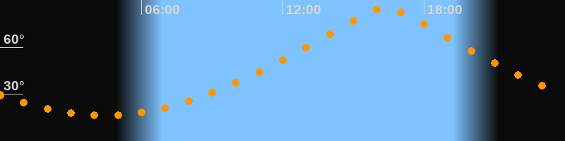 Höchster Stand (Kulmination)16:21 Uhr (h = 85°)