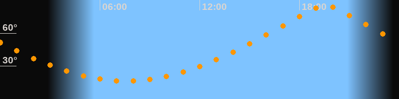 Höchster Stand (Kulmination)19:33 Uhr (h = 85°)