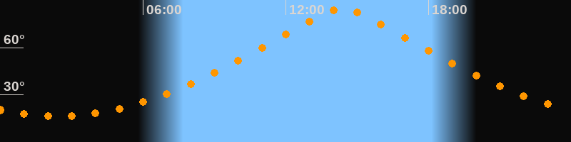 Höchster Stand (Kulmination)14:22 Uhr (h = 85°)