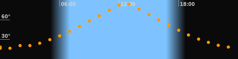 Höchster Stand (Kulmination)12:36 Uhr (h = 85°)