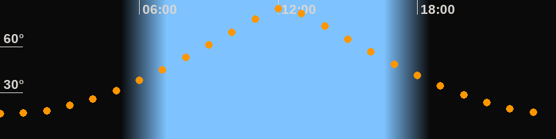 Höchster Stand (Kulmination)12:13 Uhr (h = 85°)