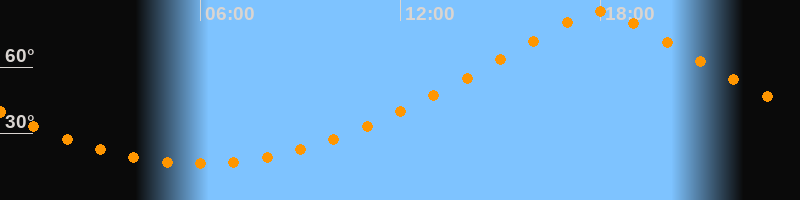 Höchster Stand (Kulmination)17:57 Uhr (h = 85°)