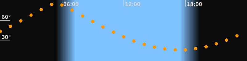 Höchster Stand (Kulmination)05:25 Uhr (h = 85°)