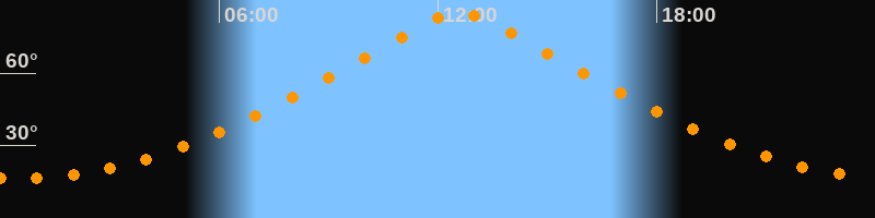 Höchster Stand (Kulmination)12:36 Uhr (h = 85°)