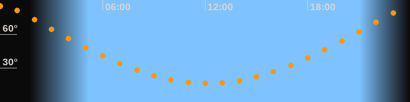 Höchster Stand (Kulmination)00:06 Uhr (h = 85°)