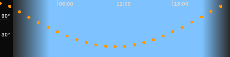 Höchster Stand (Kulmination)23:57 Uhr (h = 85°)