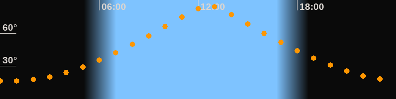 Höchster Stand (Kulmination)12:38 Uhr (h = 85°)