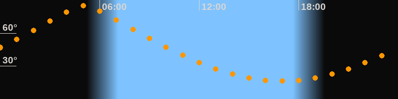 Höchster Stand (Kulmination)05:02 Uhr (h = 85°)