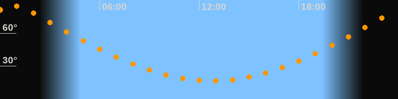Höchster Stand (Kulmination)00:44 Uhr (h = 85°)