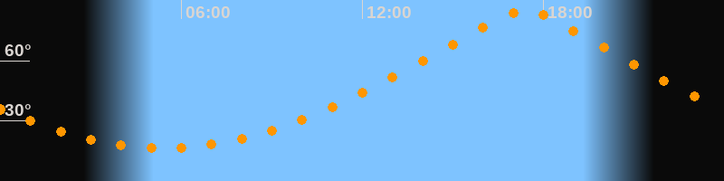 Höchster Stand (Kulmination)17:24 Uhr (h = 85°)
