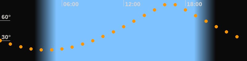 Höchster Stand (Kulmination)16:28 Uhr (h = 85°)
