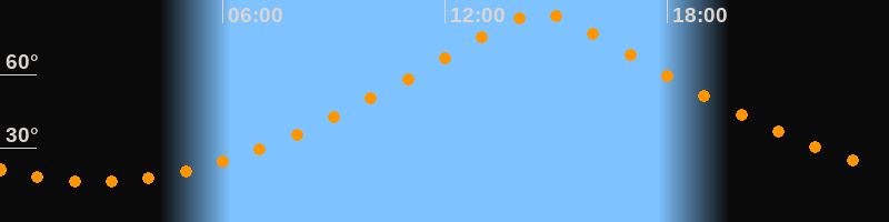 Höchster Stand (Kulmination)14:34 Uhr (h = 85°)