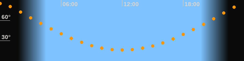 Höchster Stand (Kulmination)00:02 Uhr (h = 85°)