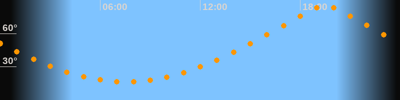 Höchster Stand (Kulmination)19:30 Uhr (h = 85°)
