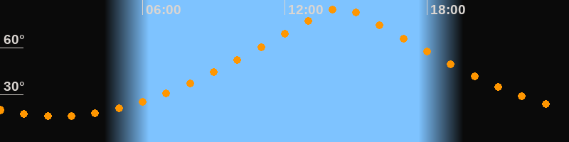 Höchster Stand (Kulmination)14:20 Uhr (h = 85°)
