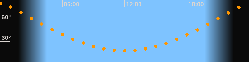 Höchster Stand (Kulmination)00:00 Uhr (h = 85°)