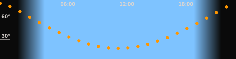 Höchster Stand (Kulmination)00:01 Uhr (h = 85°)