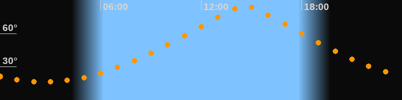 Höchster Stand (Kulmination)14:36 Uhr (h = 85°)