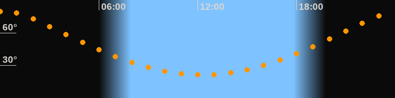 Höchster Stand (Kulmination)00:14 Uhr (h = 80,1°)