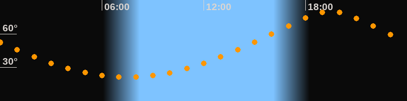 Höchster Stand (Kulmination)19:28 Uhr (h = 80,1°)