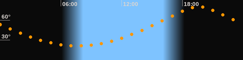 Höchster Stand (Kulmination)19:37 Uhr (h = 80,1°)