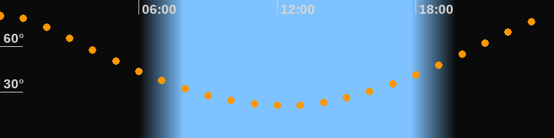 Höchster Stand (Kulmination)00:10 Uhr (h = 80,1°)