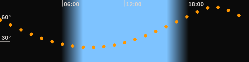 Höchster Stand (Kulmination)20:39 Uhr (h = 80,1°)