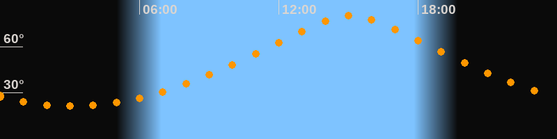 Höchster Stand (Kulmination)15:05 Uhr (h = 80,1°)