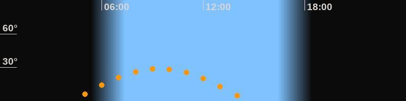 | Höchster Stand (Kulmination) | 09:24 Uhr (h = 28,9°) |