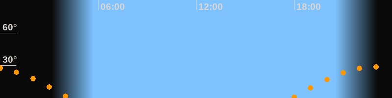 | Aufgang | 17:50 Uhr im Osten (αAz = 105,8°) |