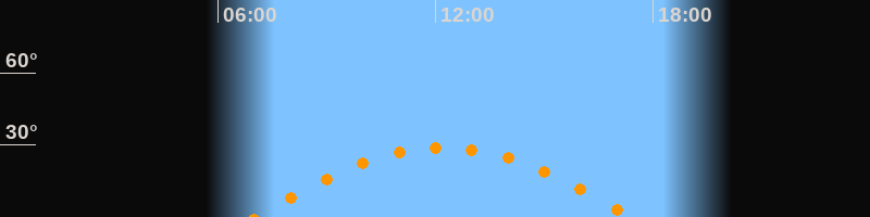 | Höchster Stand (Kulmination) | 12:13 Uhr (h = 28,9°) |