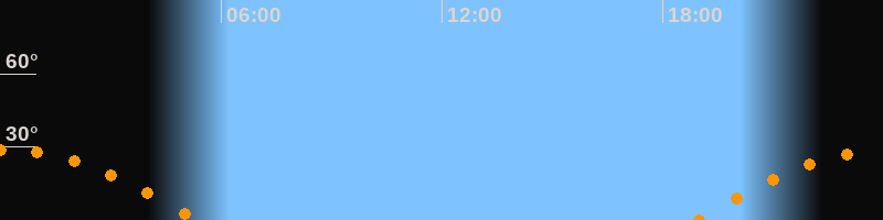 | Höchster Stand (Kulmination) | 00:06 Uhr (h = 28,9°) |