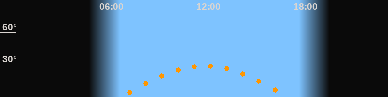 | Höchster Stand (Kulmination) | 12:38 Uhr (h = 28,9°) |