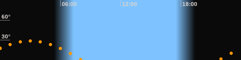 | Aufgang | 21:44 Uhr im Osten (αAz = 105,8°) |