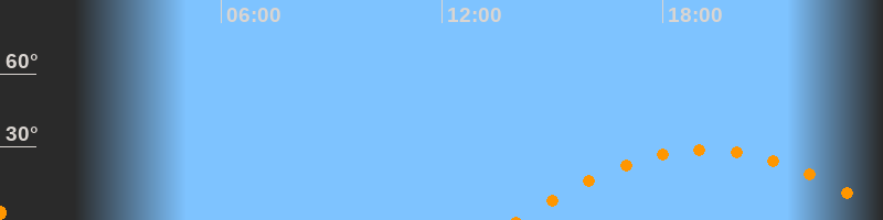 | Aufgang | 14:00 Uhr im Osten (αAz = 105,8°) |