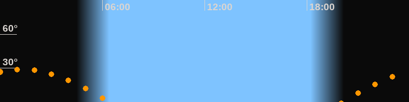 | Höchster Stand (Kulmination) | 01:17 Uhr (h = 28,9°) |
