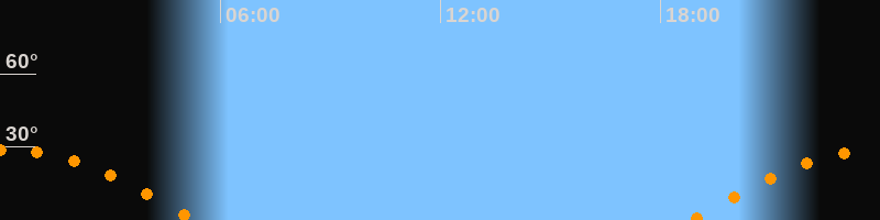 Höchster Stand (Kulmination)00:02 Uhr (h = 28,9°)